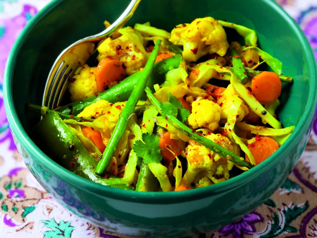 carotte, oignon, ail, gingembre, moutarde, safran, huile, vinaigre, sel, chou-fleur, chou, haricots verts, piment vert