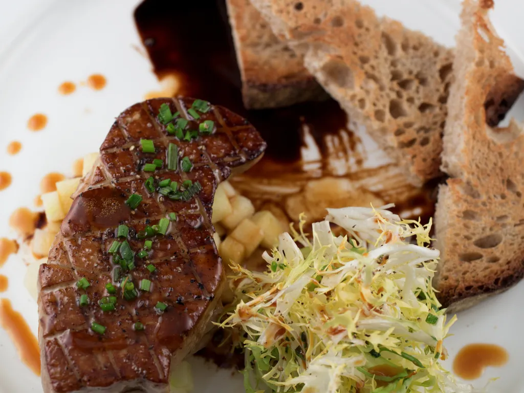 tranchez le foie gras en 8 fines escalopes, puis farinez-les légèrement sur les deux faces.