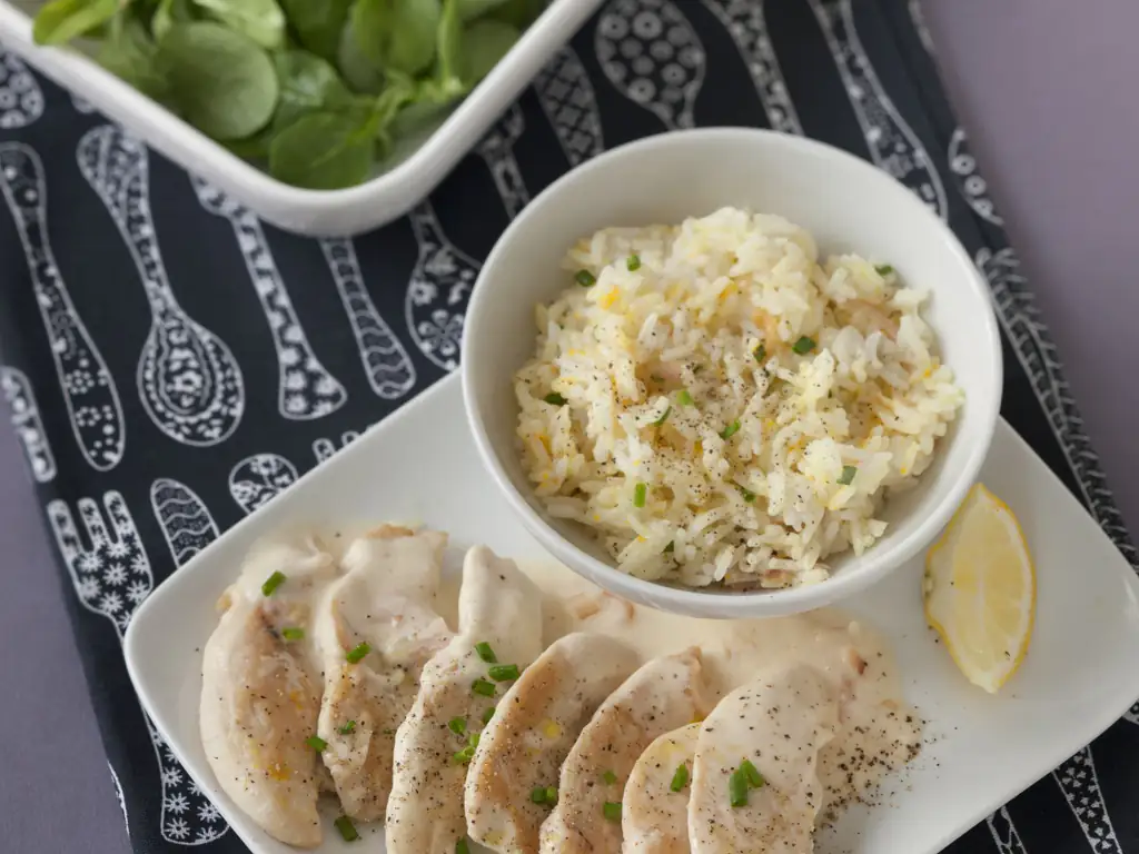 citron, oignon, sel, poivre, huile d'olive, aiguillette de poulet, crème