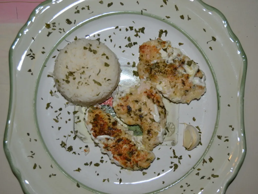 enfin, servez les aiguillettes de poulet avec la sauce persillade.