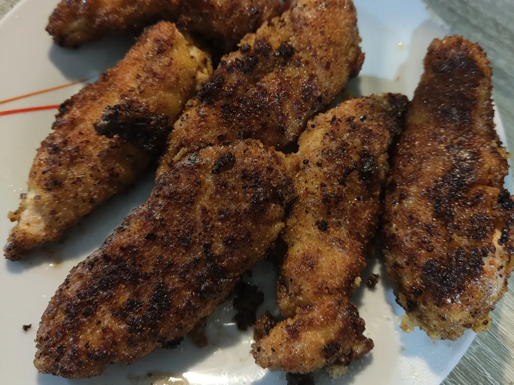 moutarde, moutarde à l'ancienne, curry, miel, sel, poivre, huile d'olive, aiguillette de poulet, chapelure, jaune d'oeuf
