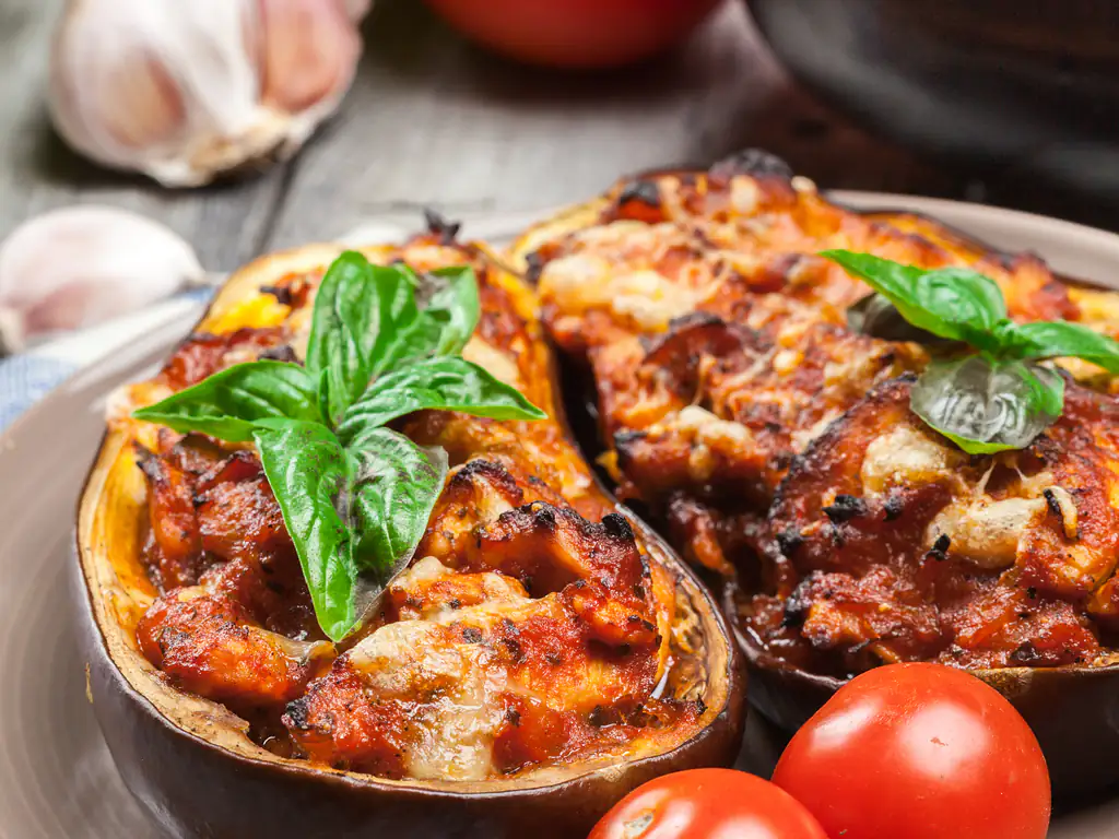 mélangez bien le tout et remplissez les demi-aubergines. recouvrez de gruyère râpé.