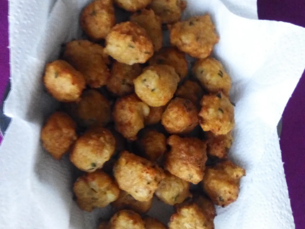 dans une sauteuse, faire chauffer de l'huile, quand celle-ci est à la bonne température, déposer des petites boules de pâte à l'aide de 2 cuillères à café. les boules ne doivent pas se toucher. les retirer et les déposer sur du papier absorbant dès qu'elles son dorées. réitérer l'opération jusqu'à épuisement de la pâte.