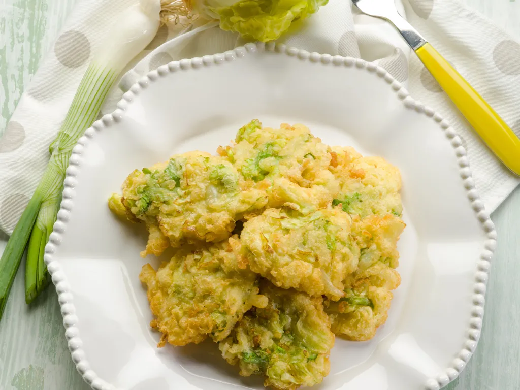 couper les feuilles de salade cuites et les incorporer à la pâte à beignet.