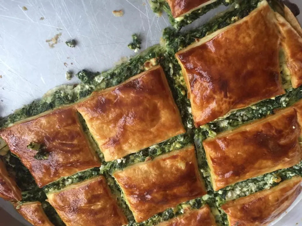 beurre, sel, pâte feuilletée, épinards frais, feta, oeuf, crème fraîche épaisse