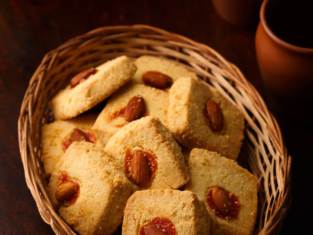 dorer au pinceau à l’aide de l'œuf battu. poser une amande mondée au centre de chaque sablé.