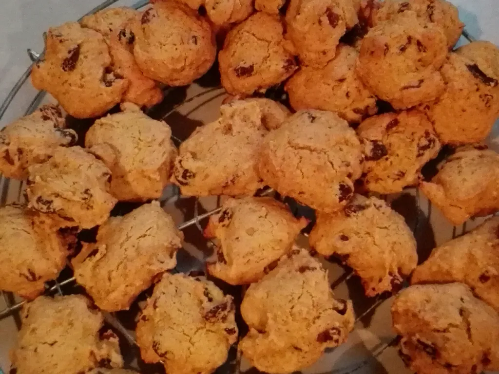 cuire les biscuits 12 minutes puis les laisser refroidir sur une grille. les biscuits se conservent 1 semaine dans une boîte. il faut cependant éviter une boîte totalement étanche, car les biscuits sont humides et auraient tendance à moisir.