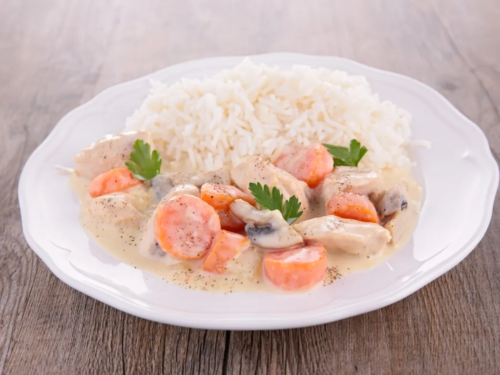 pomme de terre, champignon de paris, carotte, céleri, thym, oignon, pastis, beurre, crème fraîche, queue, fumet, blanc de poireau, laurier, jaune d'oeuf