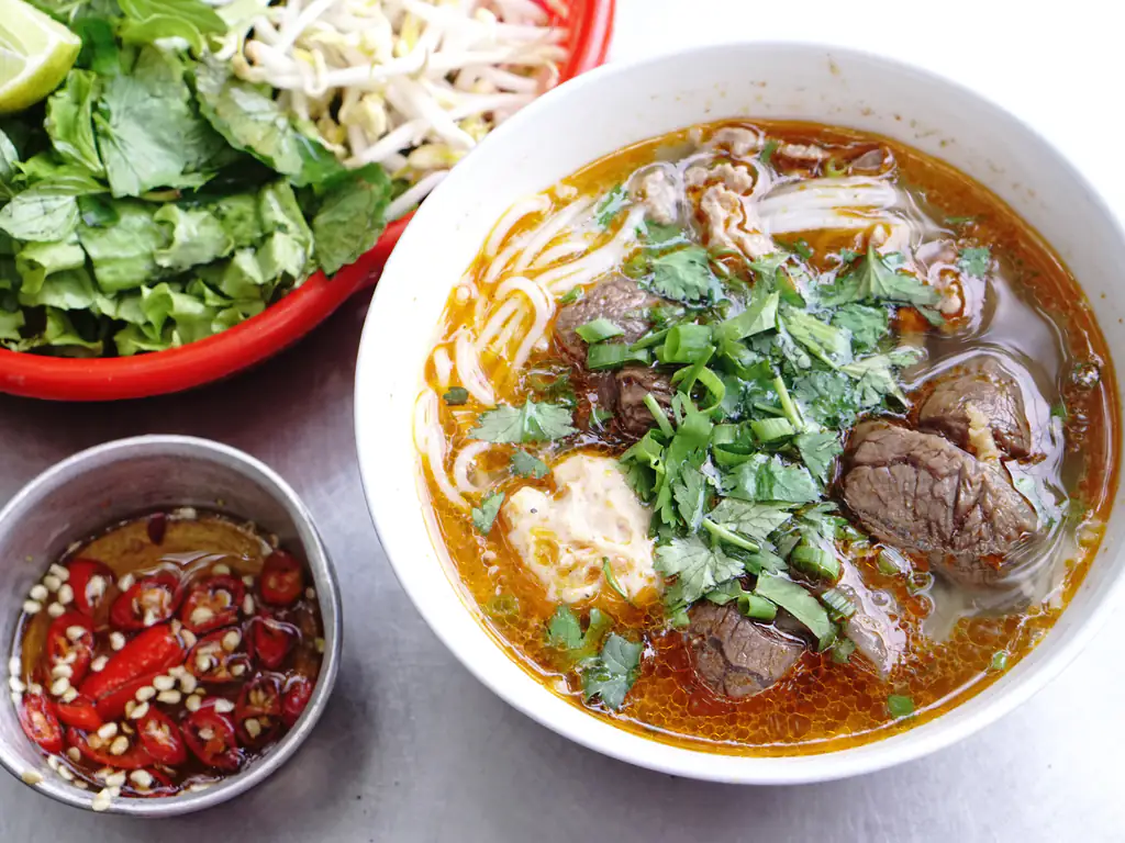 eau, sucre, nuoc mam, citron, carotte, oignon, feuilles de coriandre, concombre, germes de soja, arachide, menthe, vermicelles de riz, oignon, huile, ail, nuoc mam, curry, sucre en poudre, boeuf