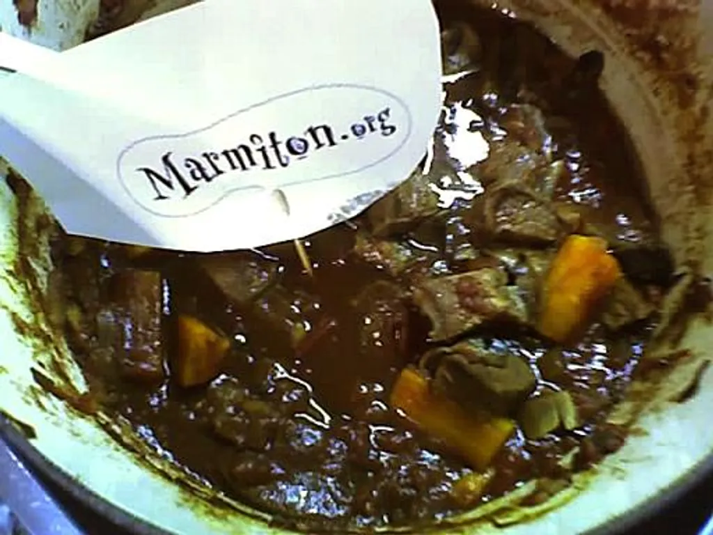 oignon, carotte, céleri, champignon, tomate, bouillon de boeuf, sauce worcestershire, thym, ail, boeuf, laurier