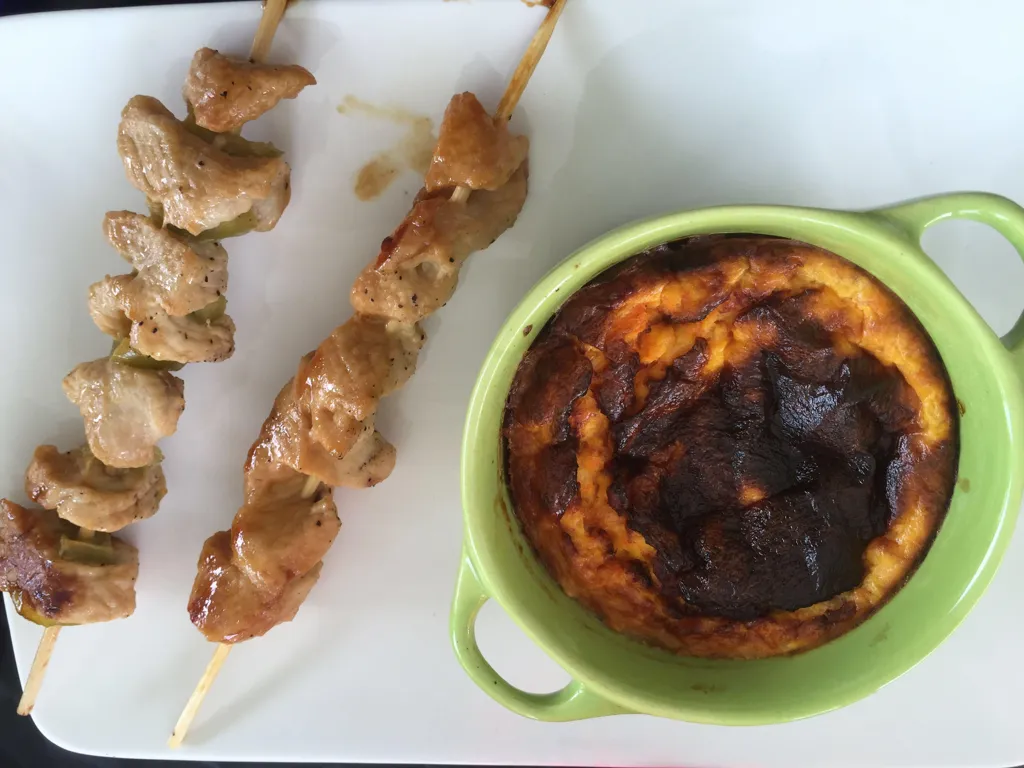 - saisir les brochettes à la poêle dans l'huile d'olive et assaisonner avec sel et poivre.