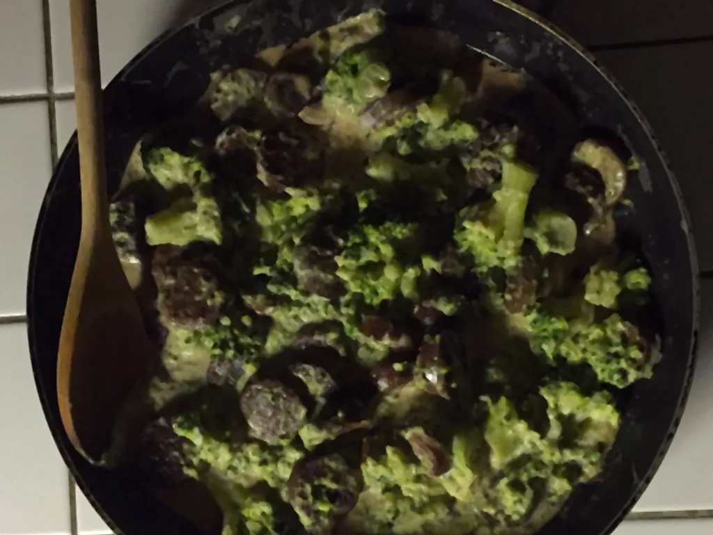 crème fraîche, poivre, brocoli, saucisse