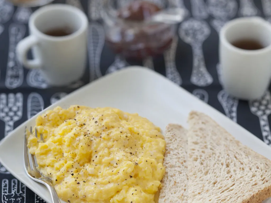sortir tout de suite les oeufs de la casserole sinon ils continuent de cuire et durcissent : les verser dans un récipient profond et épais pour les garder crémeux.
