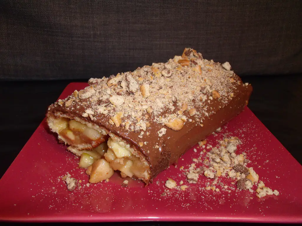 pour le nappage : faire fondre la pâte à tartiner, en recouvrir le biscuit rouler, écraser les biscuit grossièrement et les saupoudrer sur la bûche.