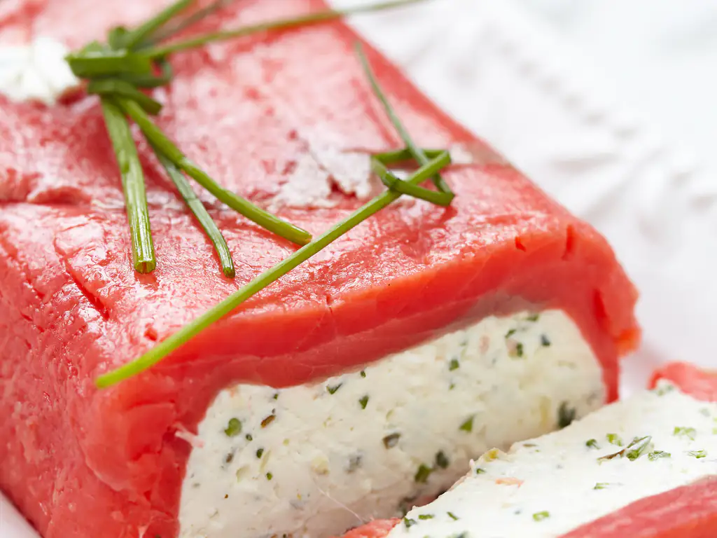 chemiser le moule de papier alu, beurrer et couvrir de tranches de saumon. remplir le moule en alternant tranches de saumon et mousse de poisson. terminer par le saumon.