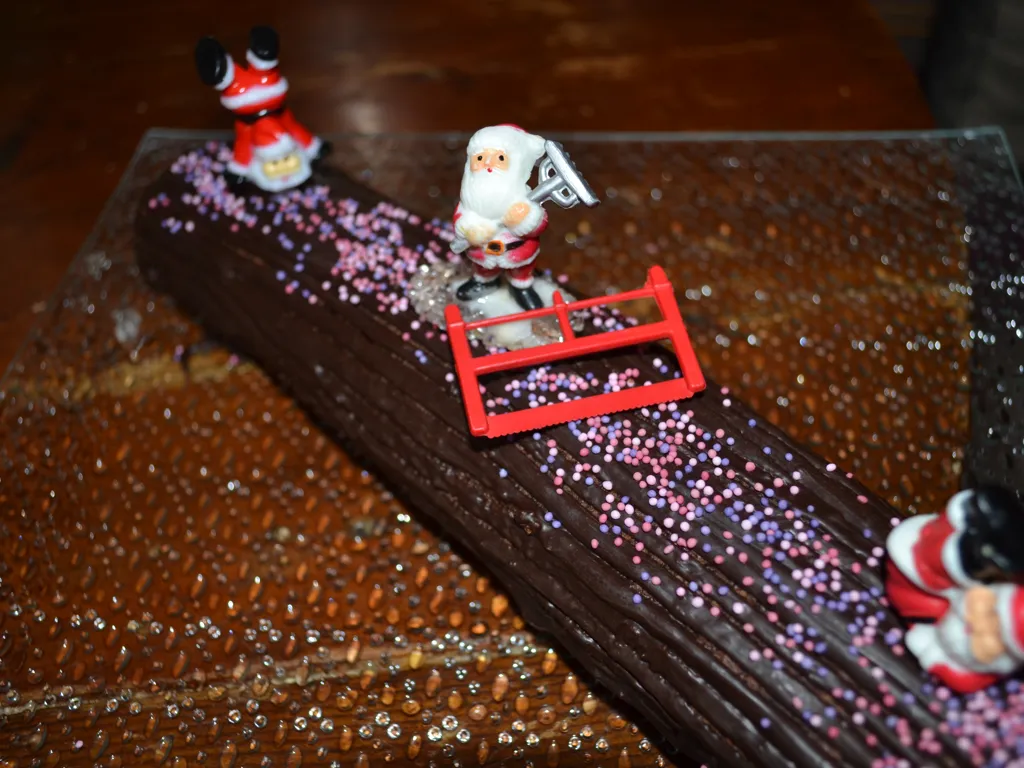 napper avec la moitié du chocolat puis enrouler la génoise en serrant pour que la bûche soit bien roulée.