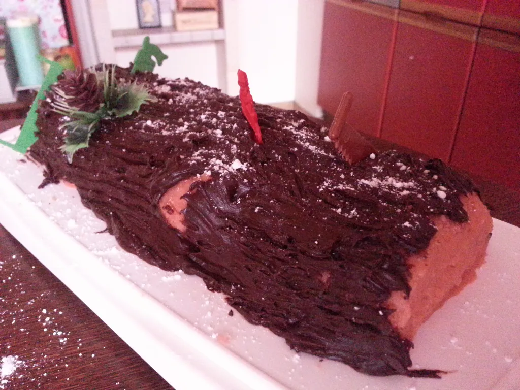 préparer un plat en longueur et former la buche sur ce plat, à la main. laisser refroidir la bûche 2 heures au réfrigérateur.