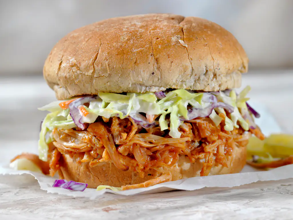 faire revenir l’oignon dans une poêle chaude avec l’huile d’olive. baisser le feu et ajouter le fruit du jacquier. laissez cuire 5 minutes avant d’ajouter la sauce barbecue. ajouter un filet d’eau et laisser mijoter une vingtaine de minutes.