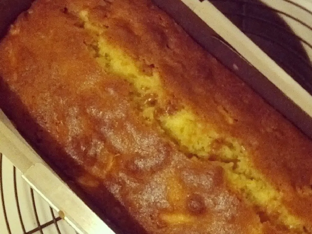 farine, sucre, lait, levure chimique, jus de citron, huile d'olive, pomme, sel, cannelle, gingembre, muscade, oeuf
