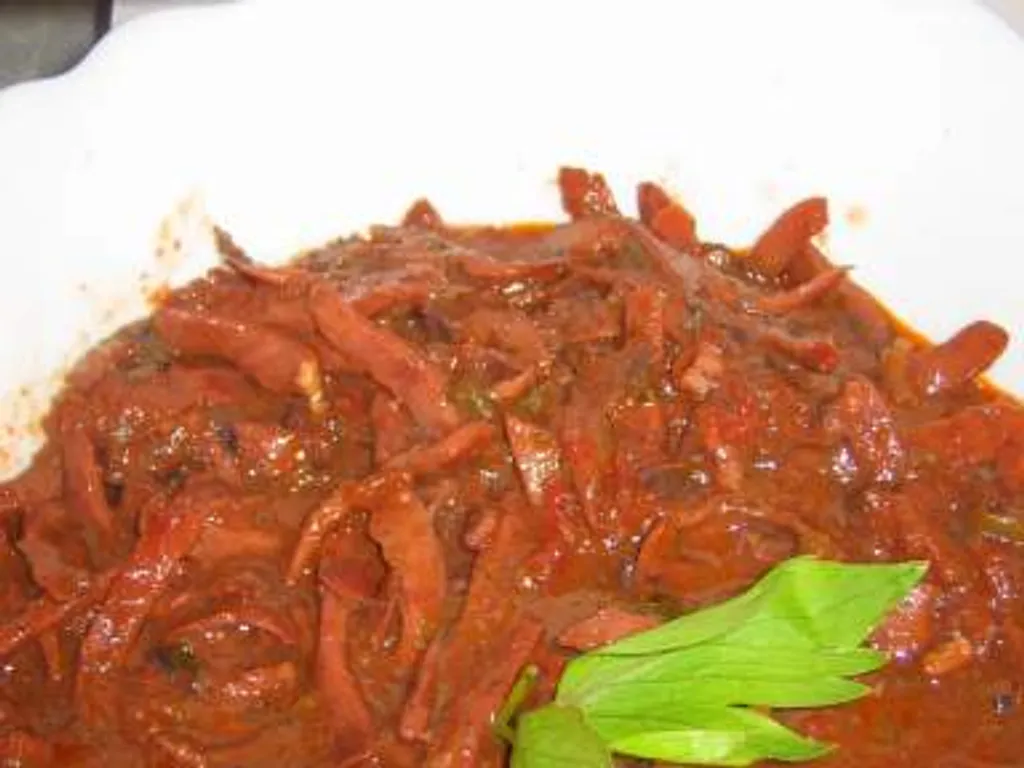 ail, oignon, vin blanc sec, câpres, thym, feuille de laurier, persil, céleri, piment de cayenne, huile d'olive, poivre, sel, calamar, tomates pelées