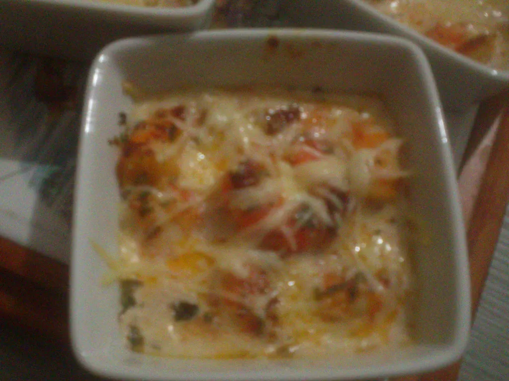 répartir cette sauce dans les cassolettes. saupoudrer de gruyère râpé et passer quelques minutes au grill.