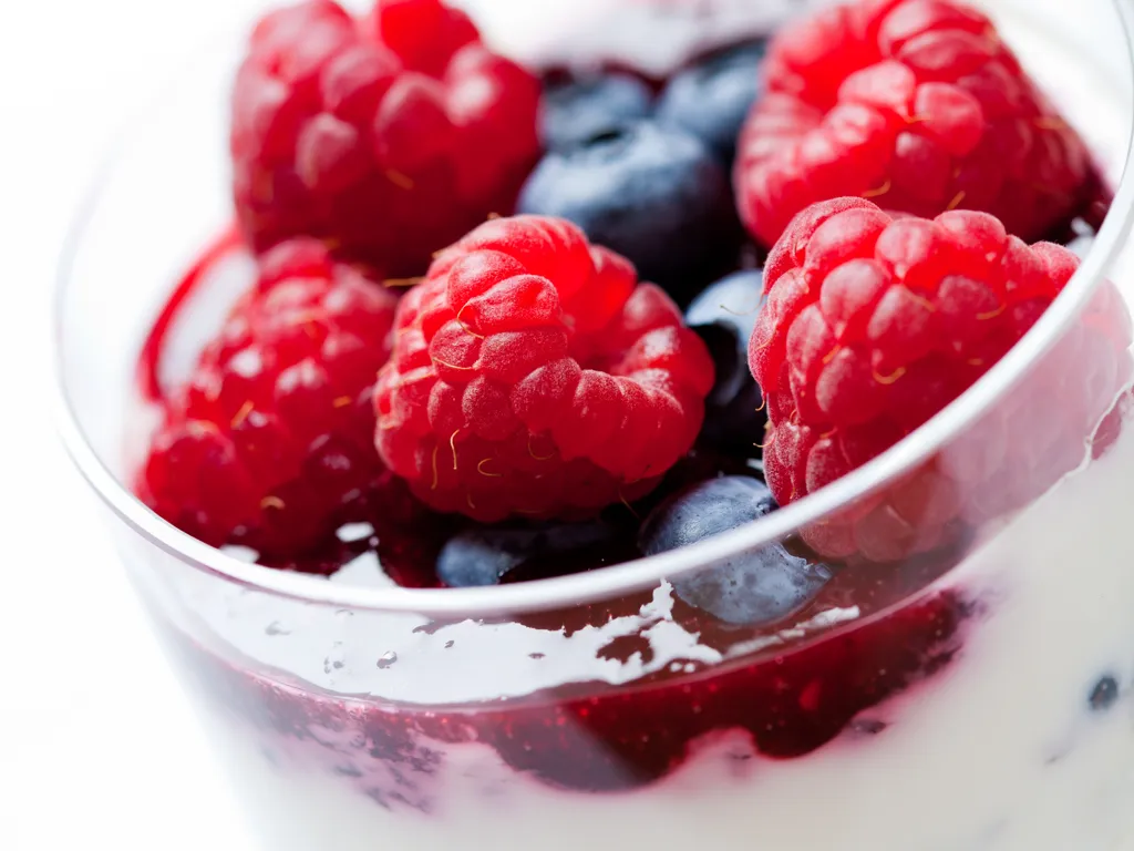 laver et couper les fruits rouges en morceaux (pour les fraises), les saupoudrer 2 cuillères à soupe de sucre et de quelques gouttes de citron. réserver au frais