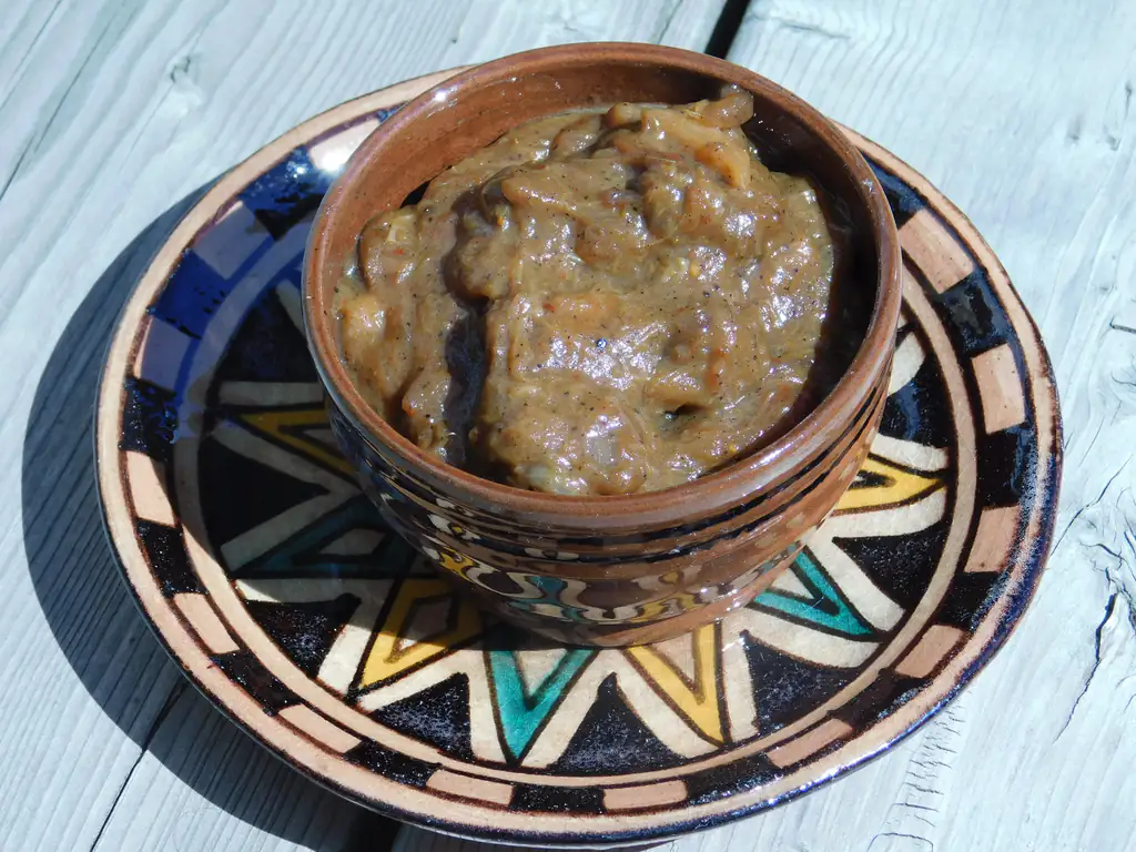 gingembre, beurre, oignon, vinaigre balsamique, sucre, piment, poivre, sel, muscade, curry, pistaches, rhubarbe