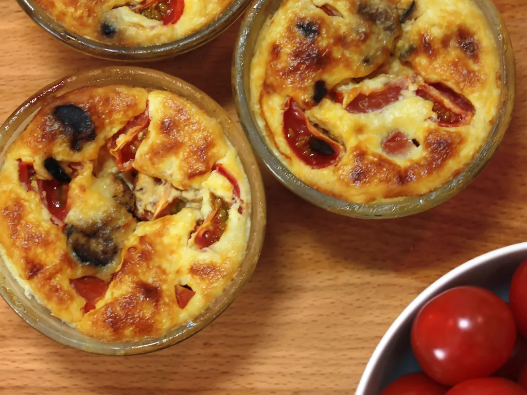 tomates cerise, ail, lait, parmesan râpé, beurre, poivre, sel, semoule fine, olives noires, oeuf, crème liquide