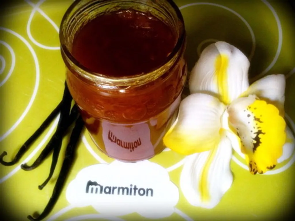 retirer la gousse de vanille et verser la confiture dans des pots préalablement ébouillantés. les fermer.