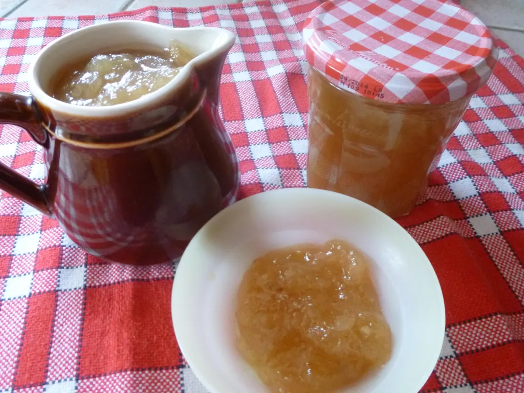 peler les fruits, les couper en petits morceaux tout en les arrosant du jus de citron pour éviter qu'ils ne noircissent. mettre dans une bassine à confitures avec le sucre,la cannelle et la 1/2 gousse de vanille fendue en 2,faire cuire entre 20 à 30 min. en fin de cuisson retirer les morceaux de gousse de vanille et il est possible d'écraser les fruits au presse purée (de nos mamies) pour éliminer les morceaux. il ne vous reste plus qu'à mettre en pot et de les retourner pour faire le vide d'air. bonne dégustation !