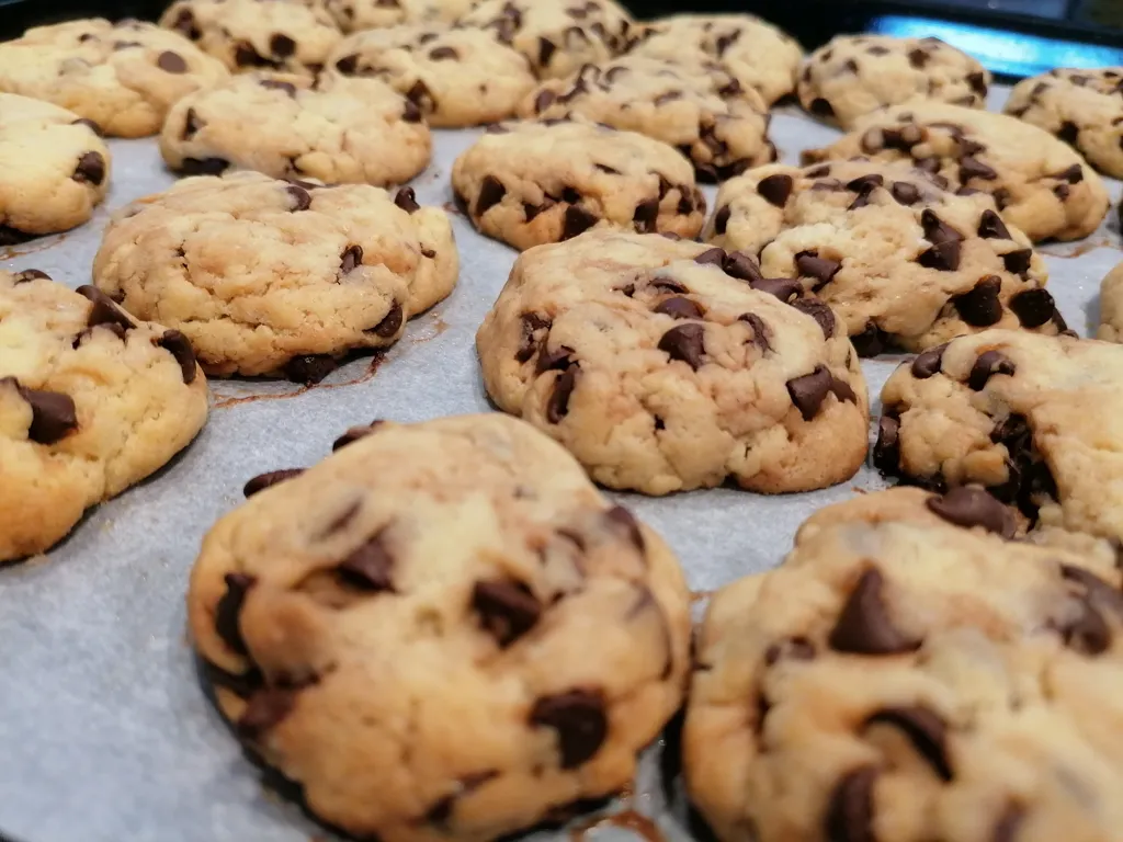 sucre vanillé, sucre en poudre, levure chimique, farine, pépites de chocolat, beurre salé, oeuf, sucre roux (cassonade)