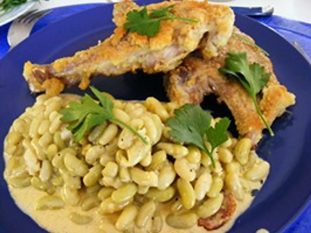 poireau, farine, beurre, huile d'arachide, sucre, eau, côte d'agneau, chapelure, oeuf