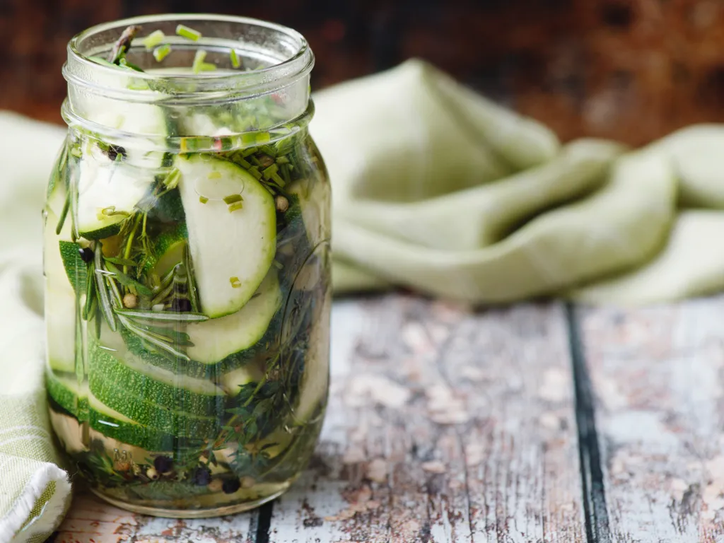 mettre en bocaux en tassant un peu et en vérifiant que les courgettes sont bien recouvertes de jus.