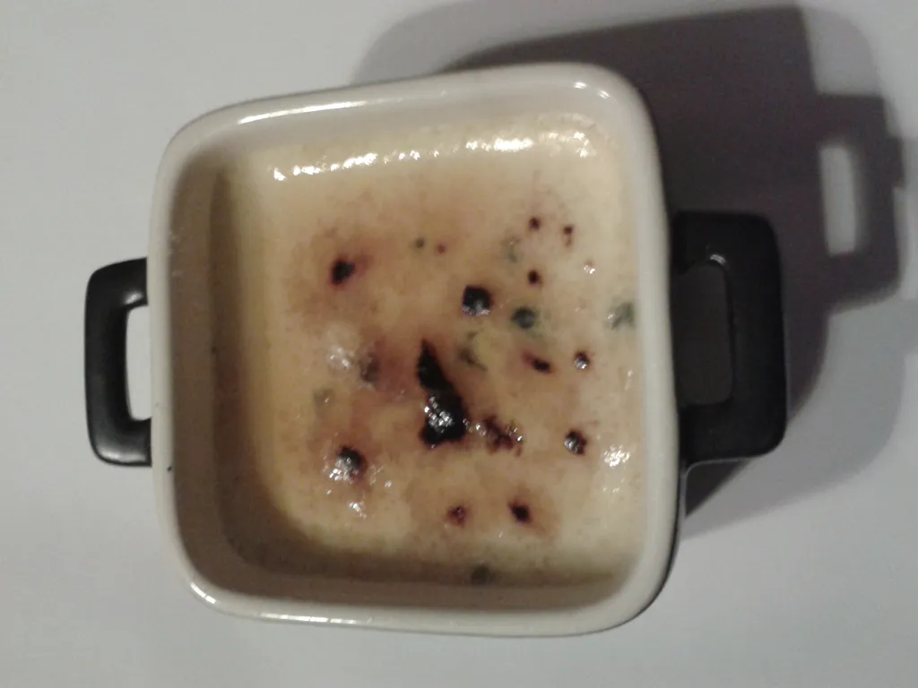 lait, muscat, sucre en poudre, jaune d'oeuf, crème fleurette, roquefort, poire