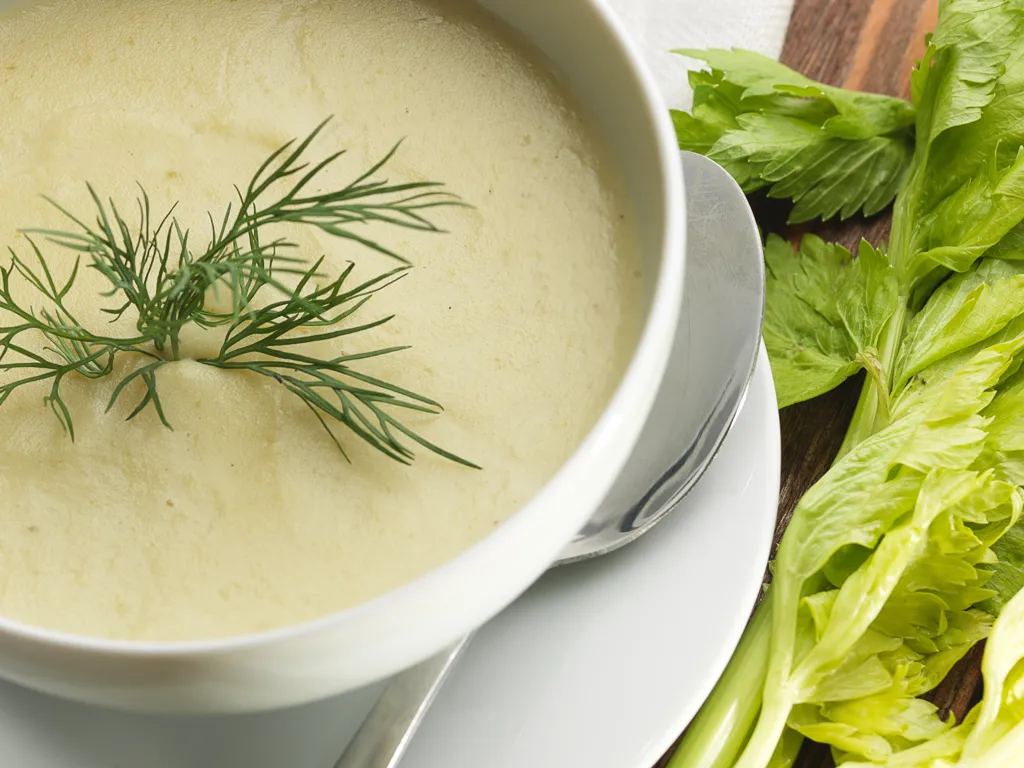 pendant ce temps, prélevez 500 g de votre céleri-rave, épluchez-le et coupez-le en petits morceaux. hachez l'oignons et râpez le reste de citron. lorsque l'eau est à point, ajoutez le céleri, l'oignon, le zeste de citron et le sel de céleri. laissez mijoter pendant une petite heure.