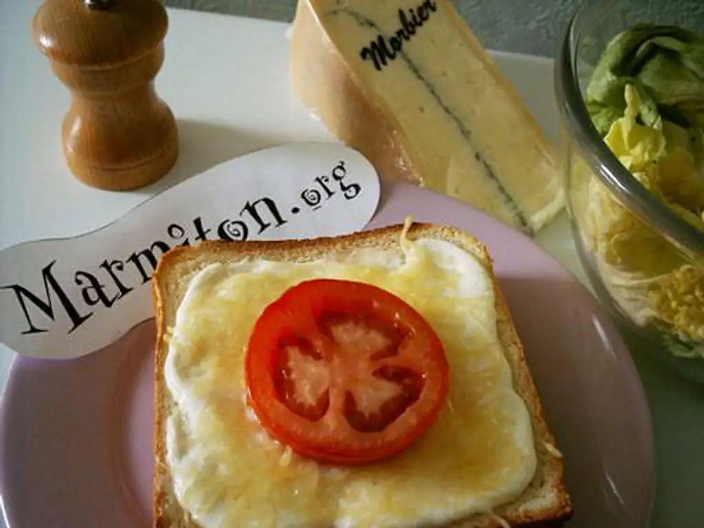 pain de mie, crème fraîche, gruyère râpé, tomate, jambon blanc, morbier