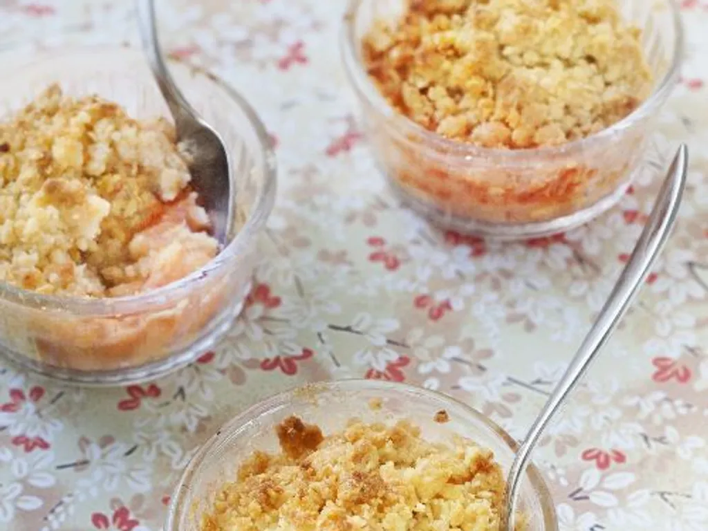 enfournez le crumble et laissez cuire 40 minutes. baissez le four à 180°c (thermostat 6), et laissez cuire encore 10 min. avant de servir tiède.