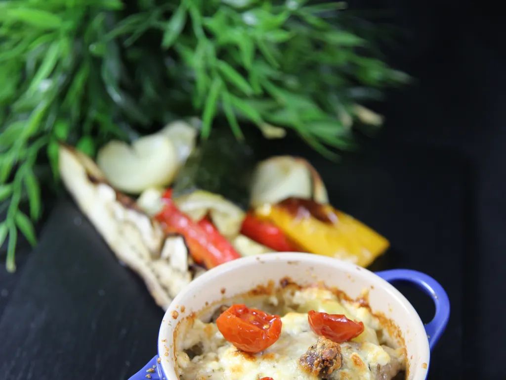 enduisez un plat à gratin d’huile d’olive et tapissez le fond avec les pommes de terre prétranchées. salez, poivrez, saupoudrez d’origan et ajoutez l’agneau avec le jus de cuisson.