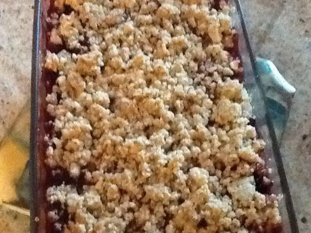 farine, sucre, chocolat blanc, cannelle, margarine, mûres