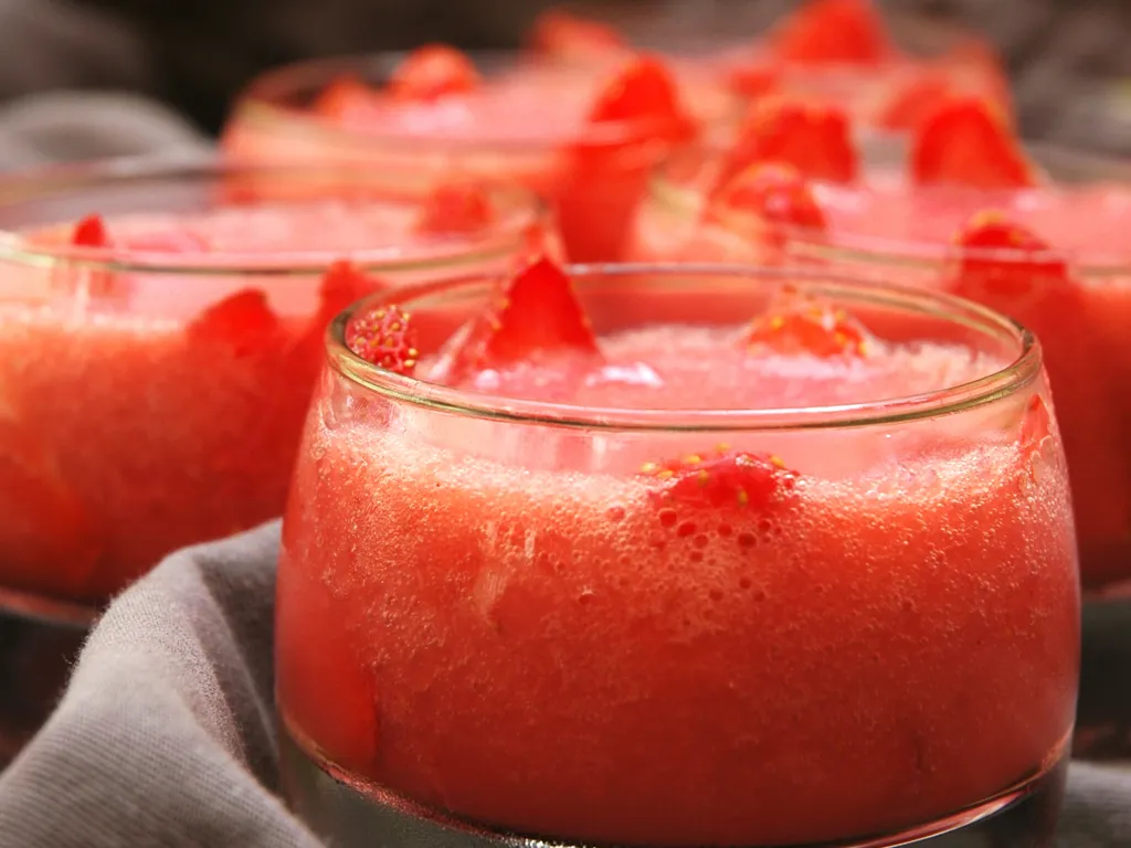 placer les tranches de fraises le long des parois des verres.