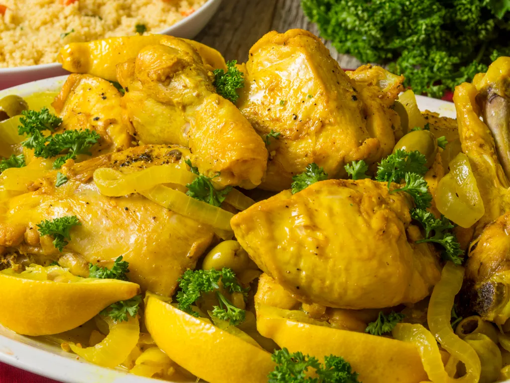 recouvrir les cuisses de poulet avec le citron confit s'il en reste.