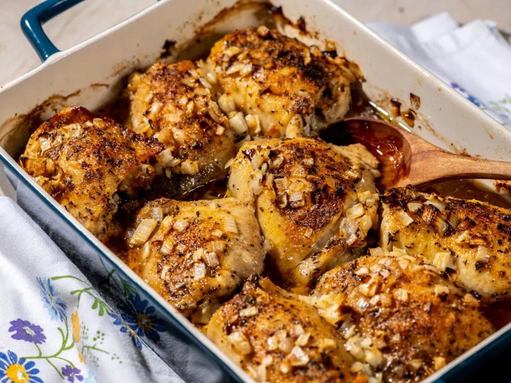 faites cuire les cuisses de poulet au barbecue, sous le grill, à la broche ou au four à 200°c (thermostat 6-7) pendant 45 min en les retournant et en arrosant souvent.