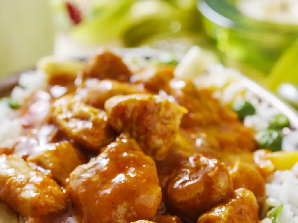 oignon, ail, pomme, courgette, aubergine, curry, piment de cayenne, cannelle, poivre, sel, coriandre, eau, bouillon, blanc de poulet, yaourt brassé, tomates pelées