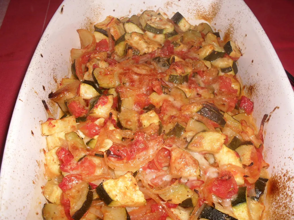 epluchez la courgette, coupez-la en fines rondelles ainsi que les tomates.