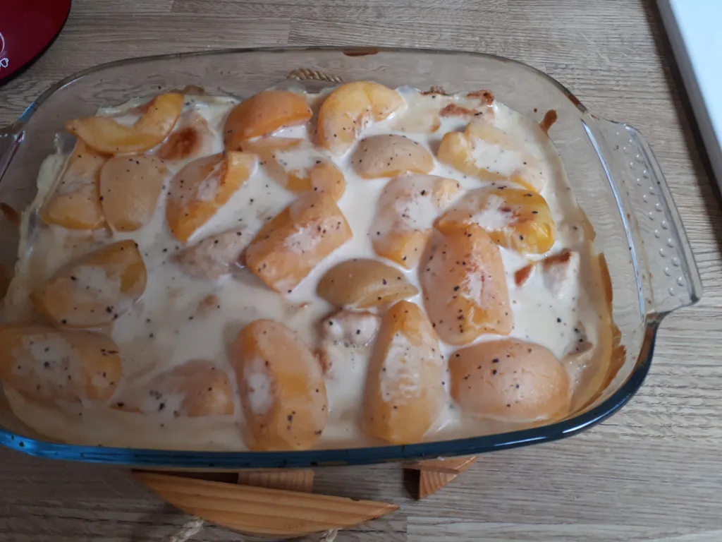 mettez le boursin, les pêches et leur jus dans la poêle, faites chauffer jusqu'à obtention d'une sauce homogène.