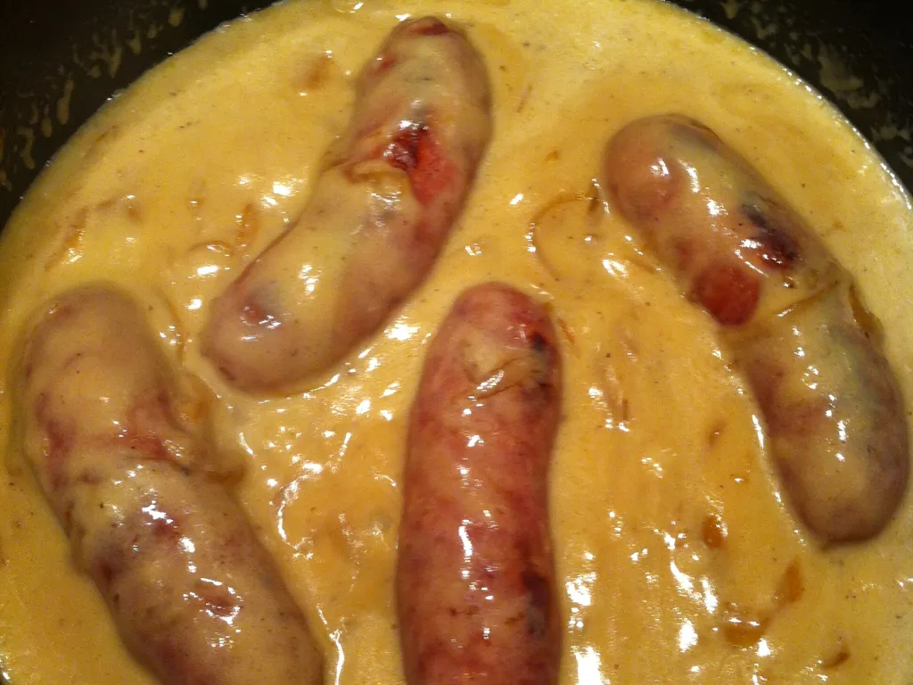 oignon, moutarde à l'ancienne, miel liquide, lait, farine, diot
