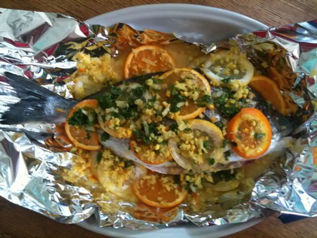 citron, orange, vin blanc, poivre, sel, aneth, huile d'olive, dorade