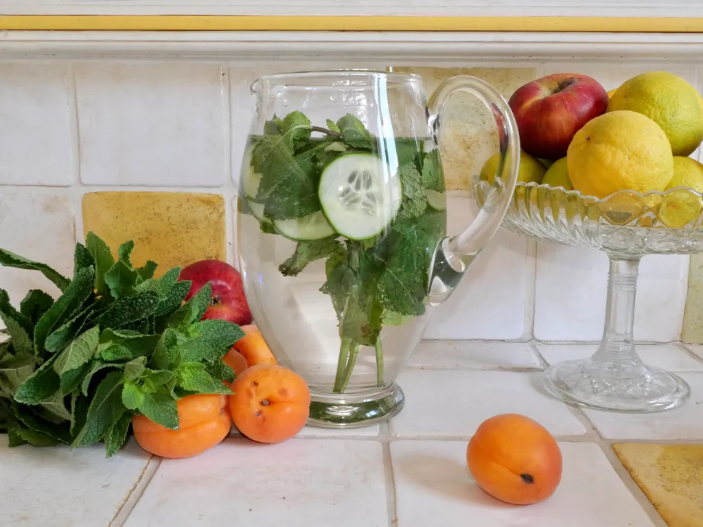 coupez vos tranches de concombre et mettez-les dans une carafe.