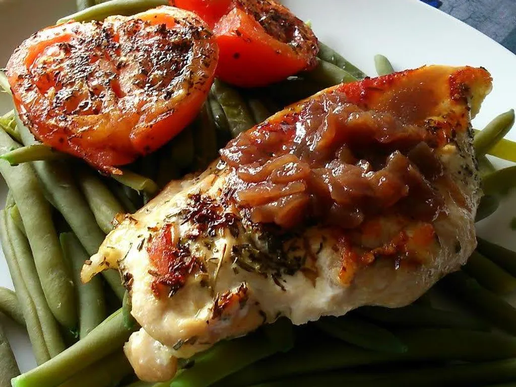 tomate, basilic, poivre, sel, escalope de dinde, échalote, haricots verts