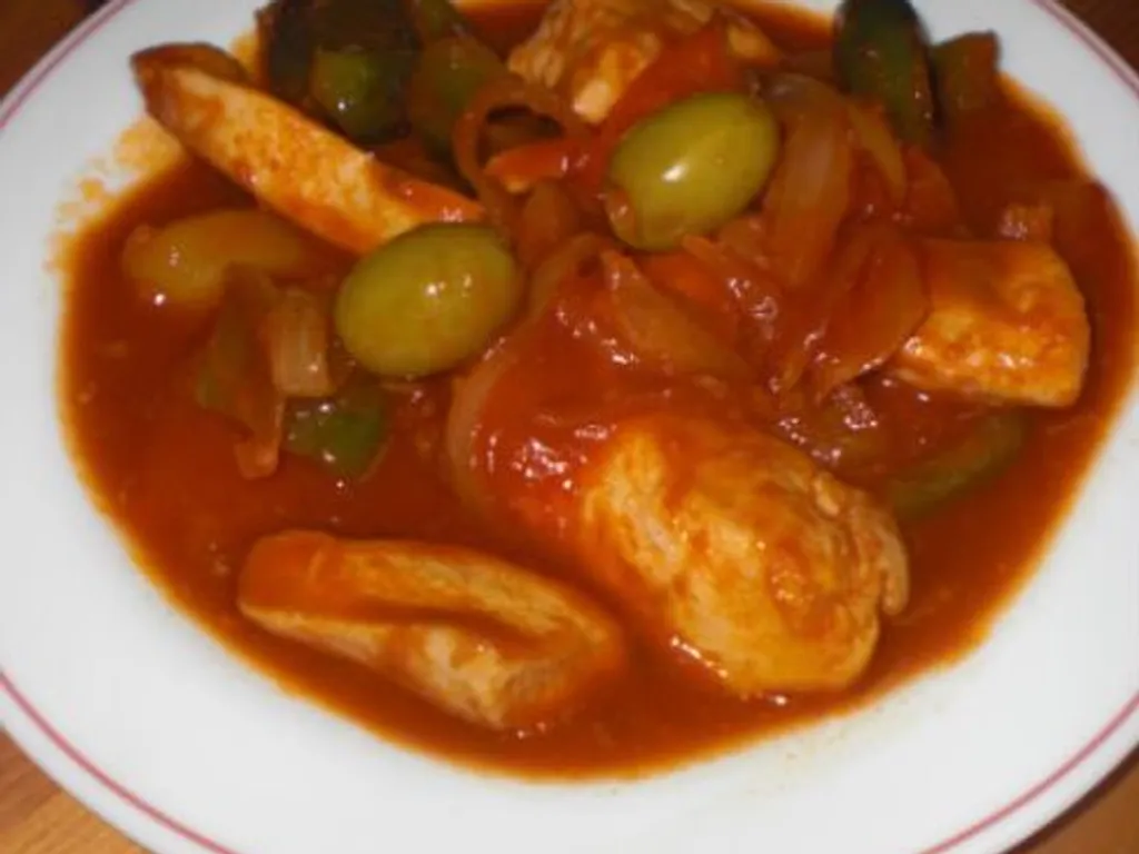 réchauffer les escalopes dans la sauce, ajouter les olives et les anchois.
